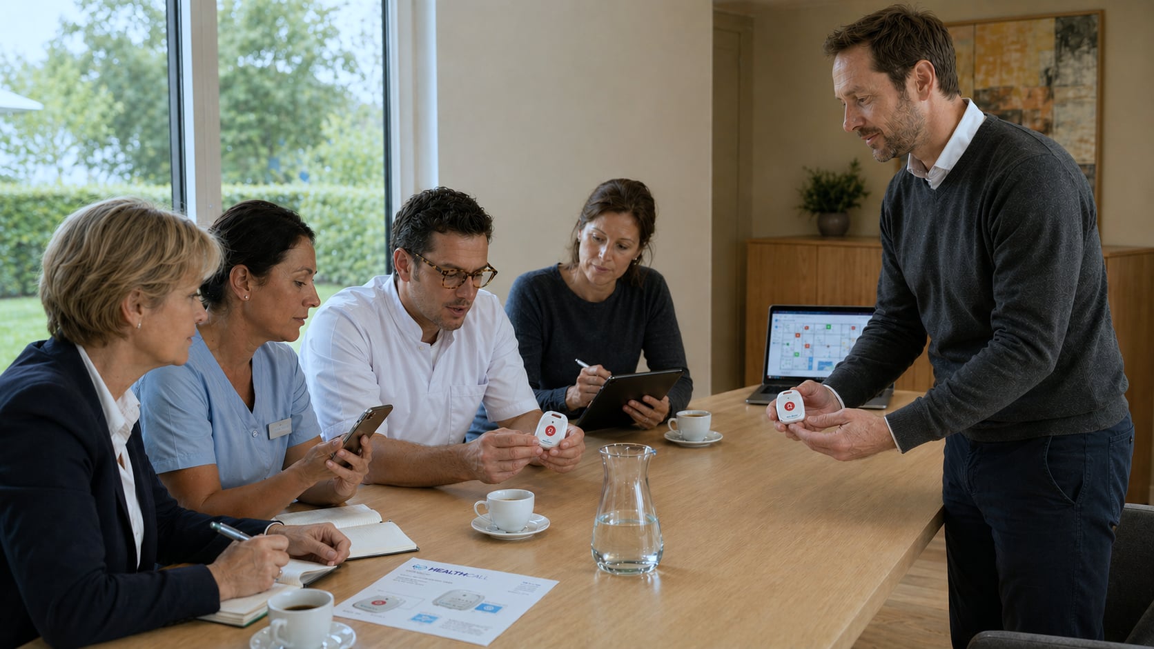 Une démonstration de 30 minutes, construite autour de votre maison de repos : votre architecture bâtiment, vos systèmes existants, vos priorités de terrain. Vous repartez avec une vision claire de ce que Healthcall peut, ou ne peut pas, faire chez vous, et une estimation budgétaire indicative. Pas de présentation commerciale pré-mâchée, pas d’engagement, pas d’inscription à une newsletter : un échange technique et métier avec un interlocuteur qui connaît le quotidien des directions et équipes soignantes.